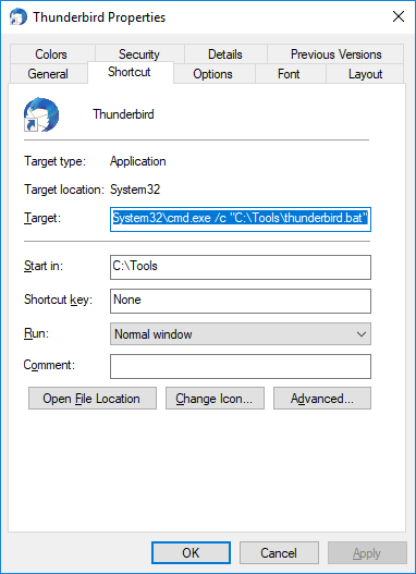 For example, my batch file is in the C:\Tools folder. This means that the original shortcut had the content
