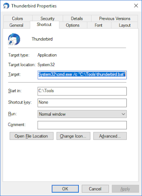 start "Thunderbird" "c:\Program Files (x86)\Mozilla Thunderbird\thunderbird.exe"