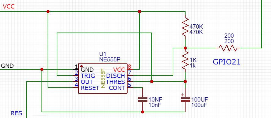 done by setting the logical 0 to the GPIO 21. The capacitor is shorted to ground via 200 Ohm resistor, and