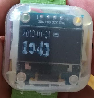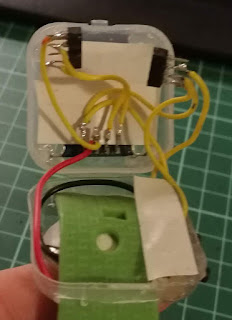 I have used the original plastic box for the OLED display to put all the components inside. Here is the bottom view of the same watch: