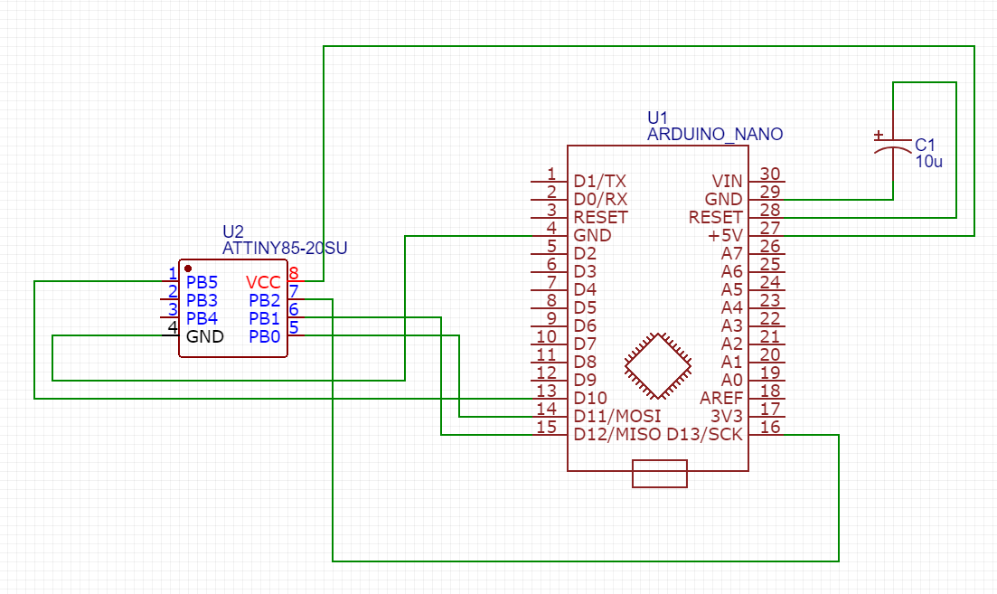 I have also decided to use my Arduino as a programmer for the AtTiny85. It is not necessary to use the Arduino, but I decided to do so, because it looked like the easier solution.