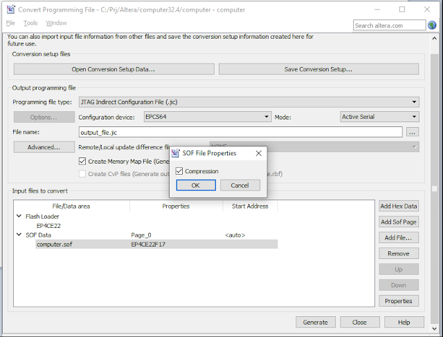 6. Click on the chosen SOF file in the table (in my example, the computer.sof file) and click on the Properties. Turn on the compression: